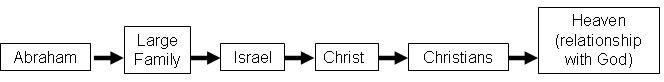 God's determination from the covenant to Abraham (Genesis 12:1-3) was to work continuously toward the full restoration of relationship between Himself and people. Each component was only a means [a vehicle] to take God's determination to the next component. Each component was not God's final goal. Each was a means to move God's determination toward completely restored relationship. God's determination was not time-based. It did not matter to God how long it took to move from one component to another. God's determination was intent-based.
